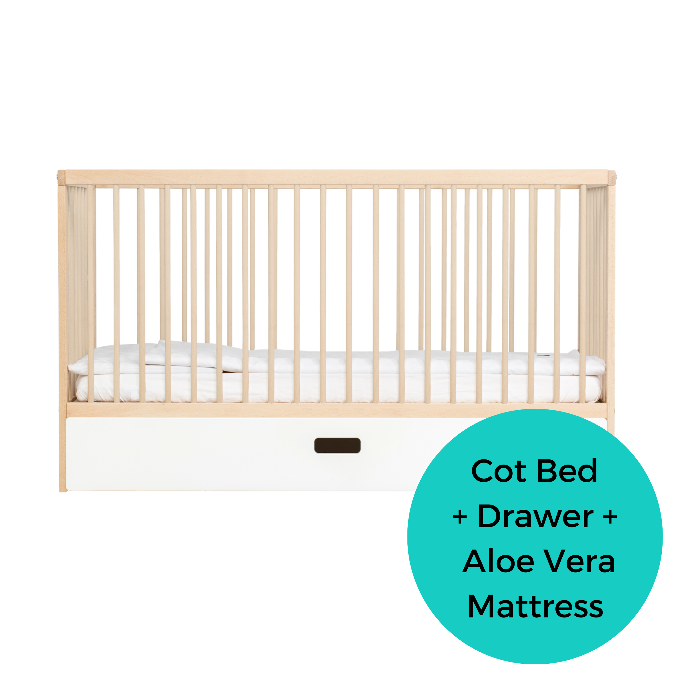 Midi Cot Bed With Drawer & Aloe Vera Mattress - Beech