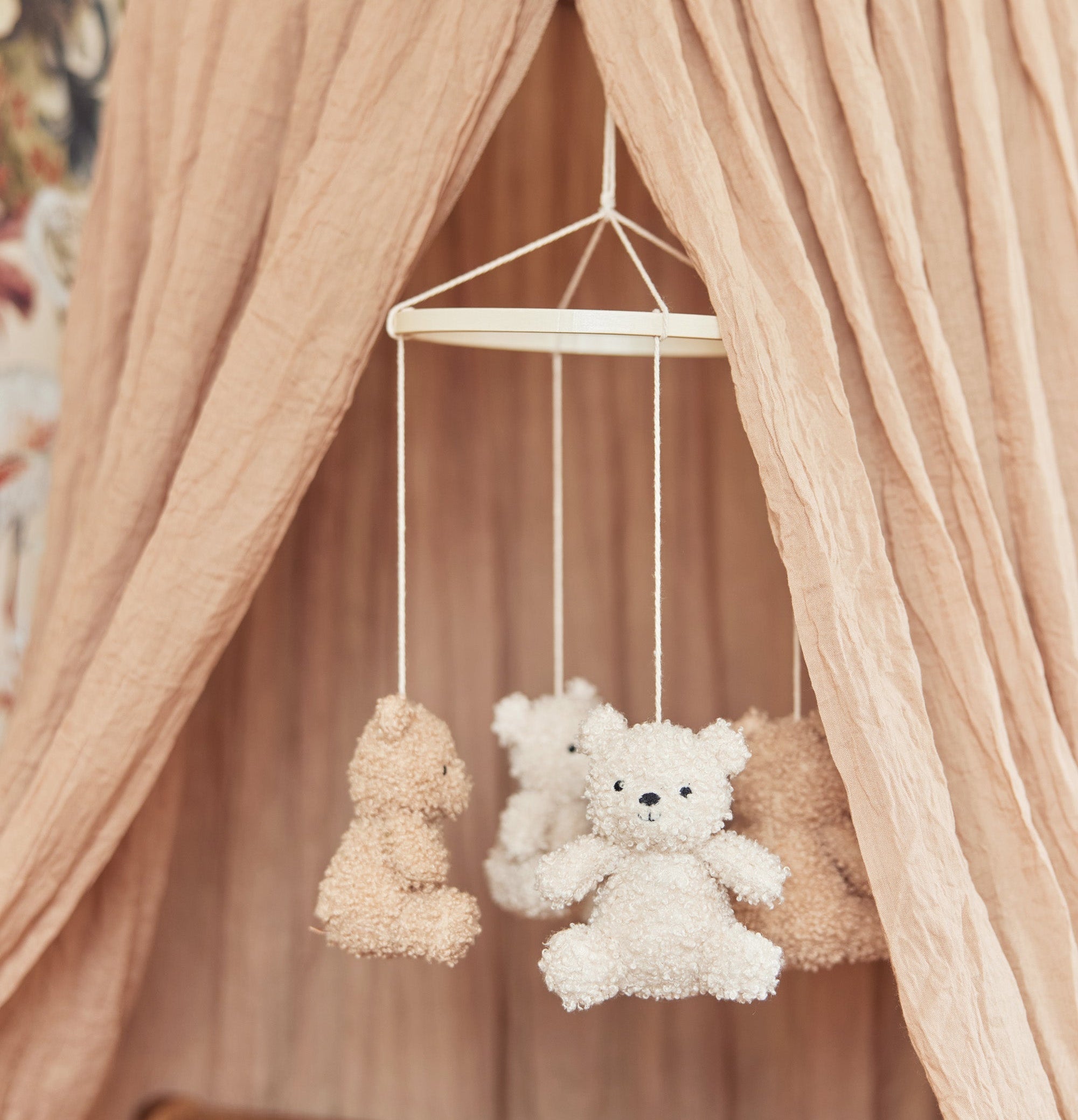 This Jollein teddy bear cot mobile adds a soft touch to your baby’s nursery. Featuring adorable teddy bears in natural tones, it’s perfect for stimulating baby's visual and motor development from an early age, while also helping your little one wind down at night.