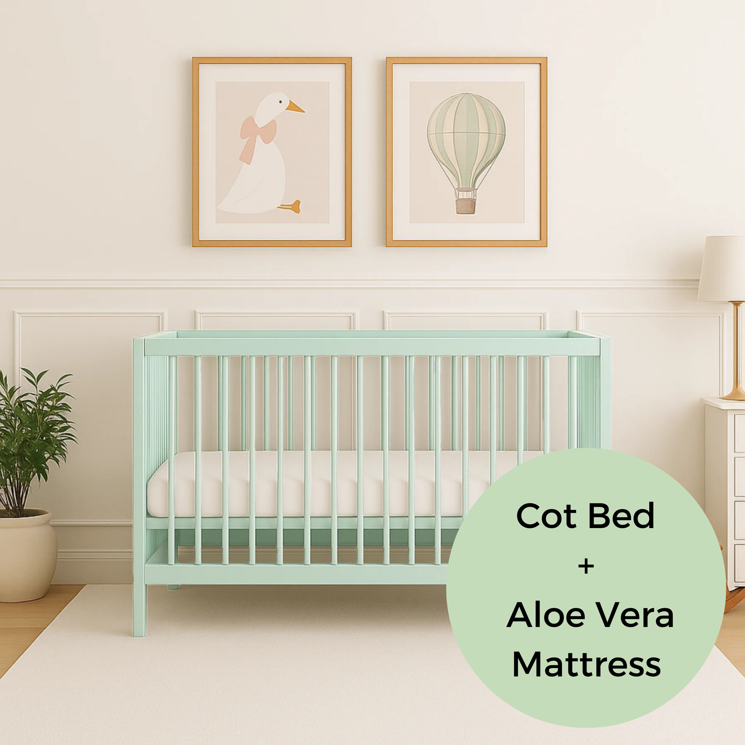 Our Essential bundle is the perfect kit to complement any nursery style. It included your choice of cot bed and an Aloe Vera mattress - everything your baby needs for a cosy and safe sleep environment, all at an excellent price