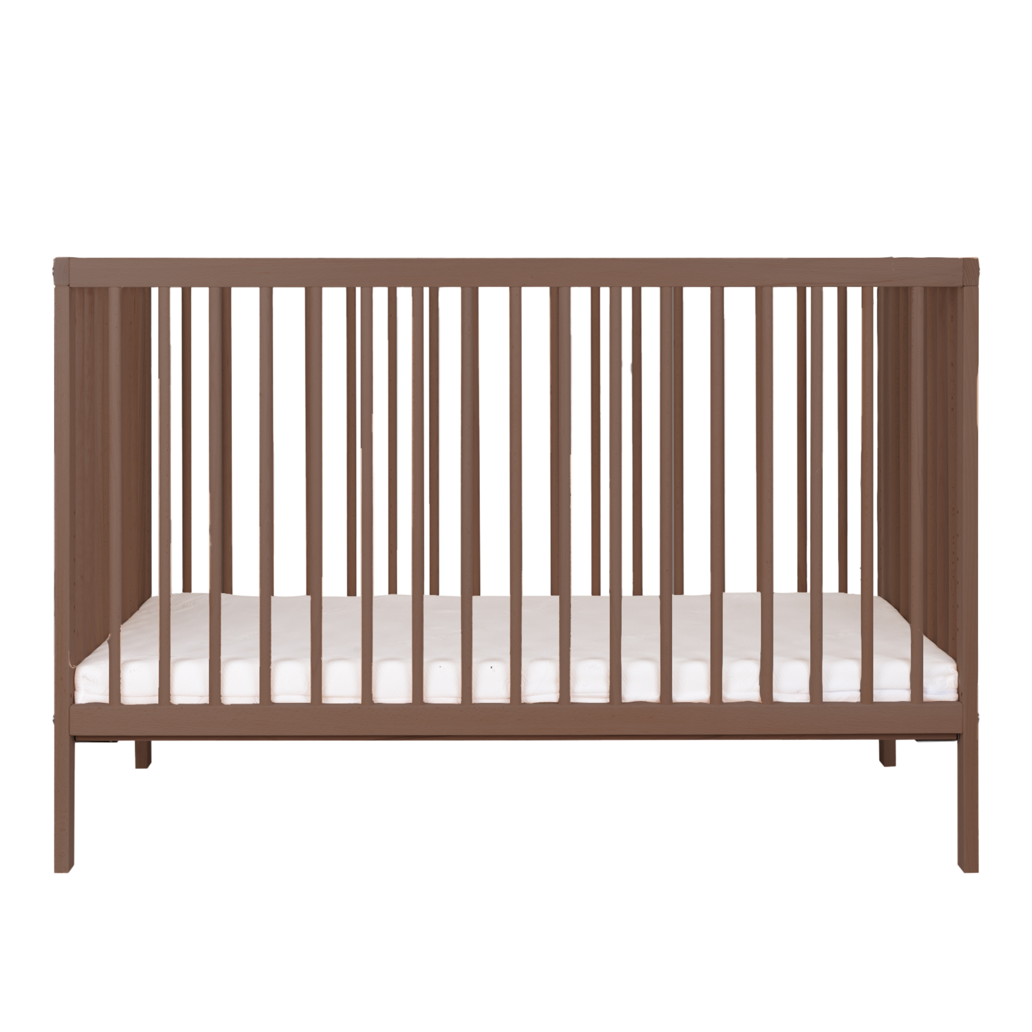 Made with durable and sustainable materials, with absolutely no toxic or harmful chemicals, you can have peace of mind that your baby is sleeping in the safest environment. This dark wood cot bed is perfect for the eco-conscious parent and well suited to any nursery style.