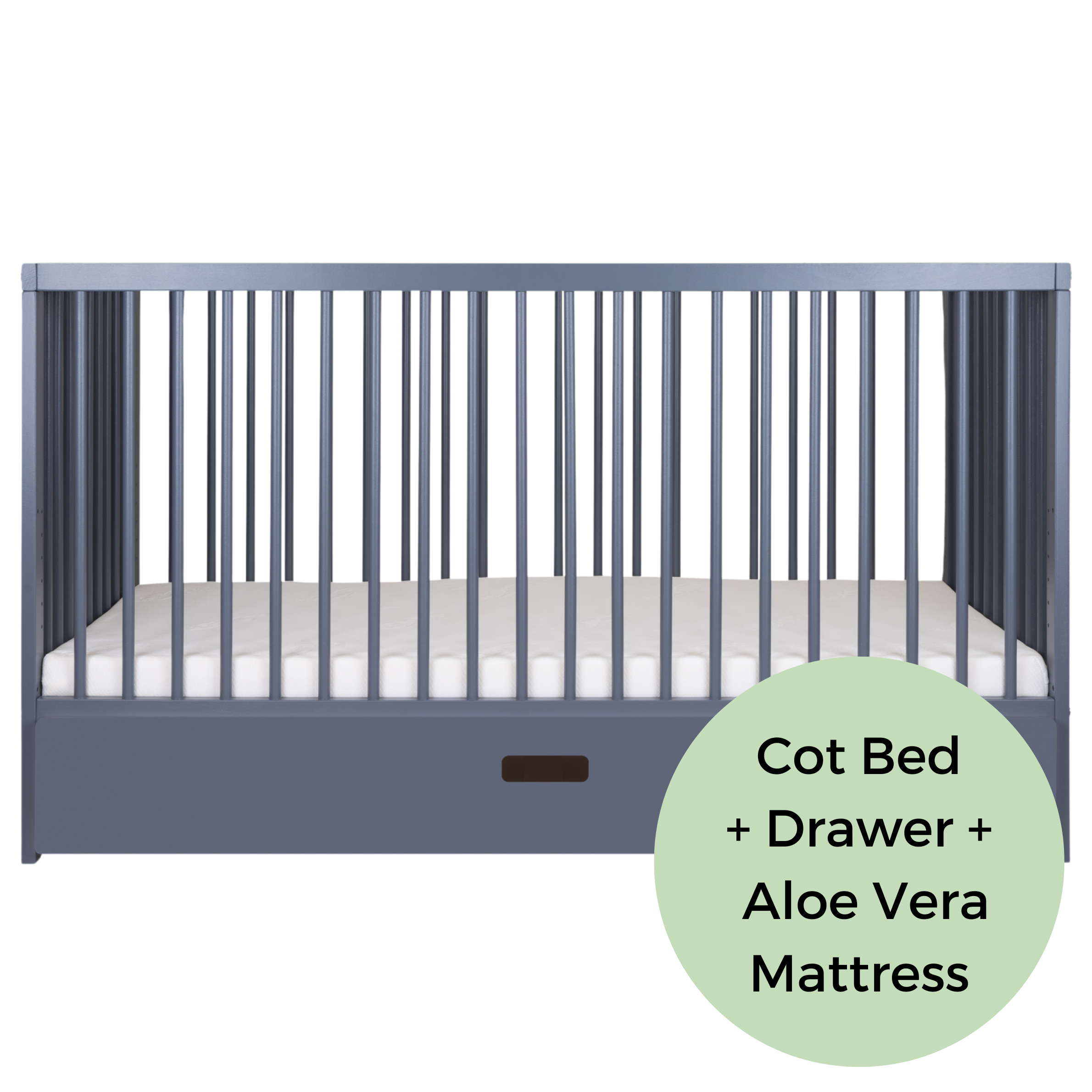 Midi Cot Bed With Drawer & Aloe Vera Mattress - Stone Blue