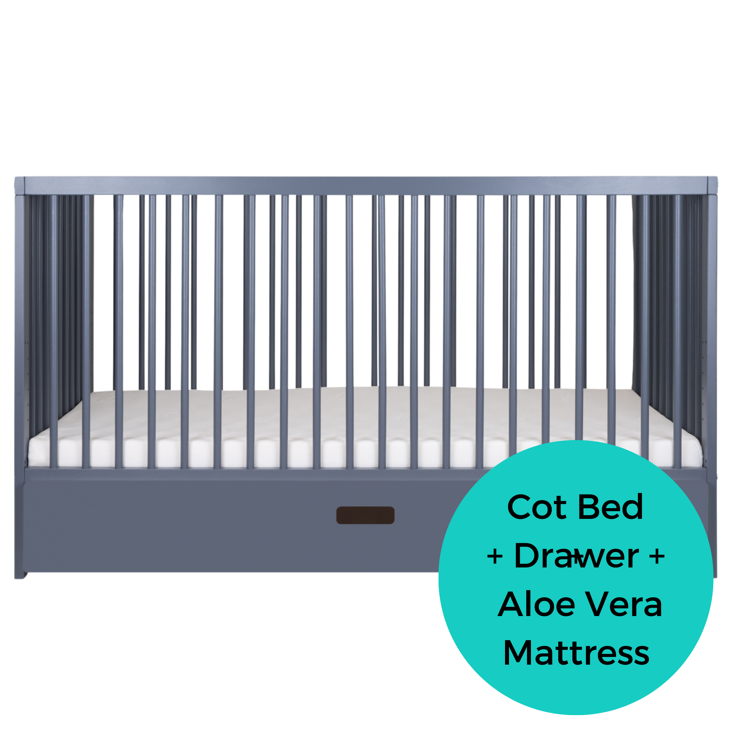 Midi Cot Bed With Drawer & Aloe Vera Mattress - Stone Blue