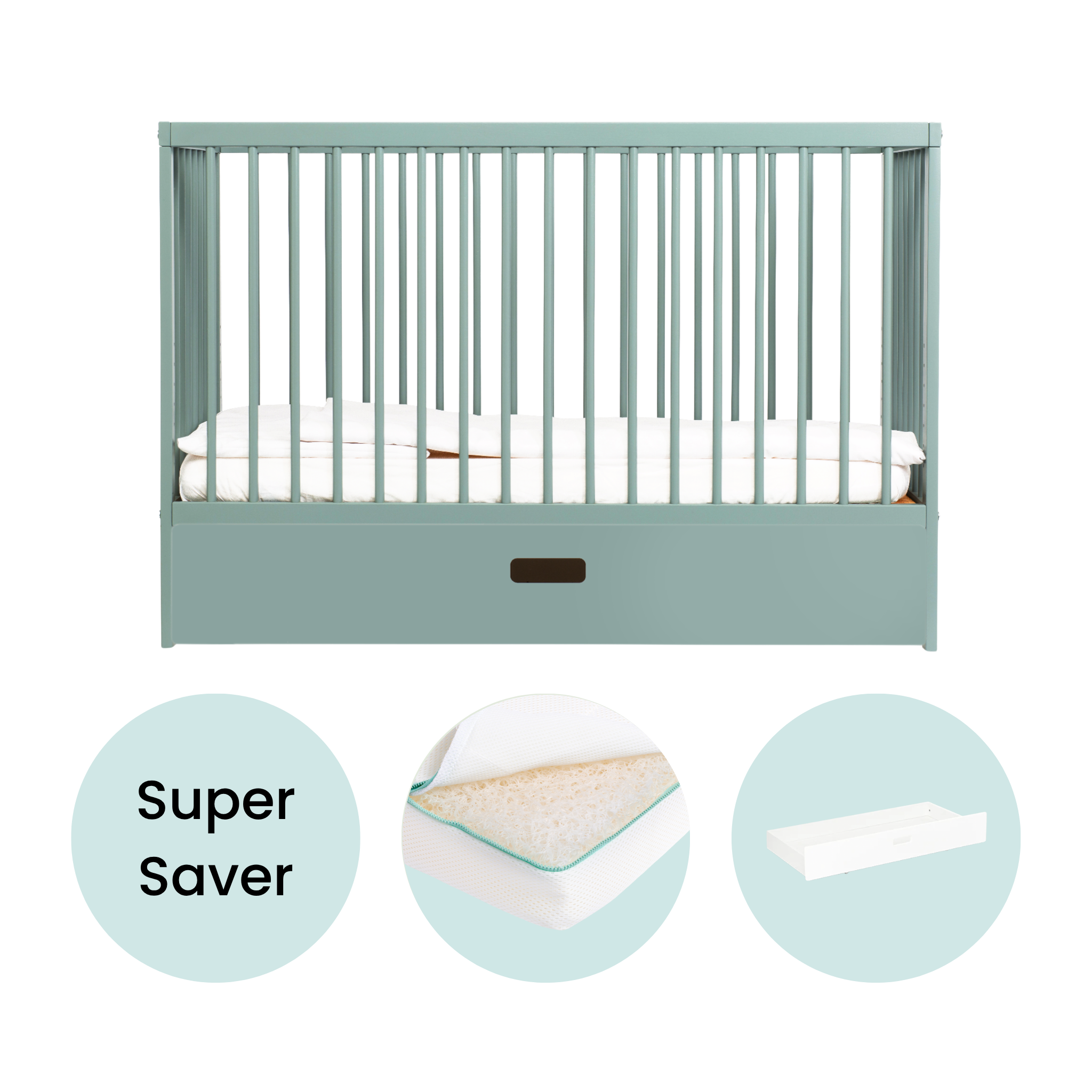 Mini Cot Bed With Drawer & Luxury Breathable Air Mattress - Stone Teal