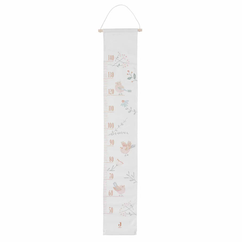 • Watch your little one soar with the Jollein Lovely Birds Growth Chart! This beautiful chart, crafted from soft oatmeal-colored cotton, features a charming design of birds and branches, adding a playful and serene touch to any nursery.