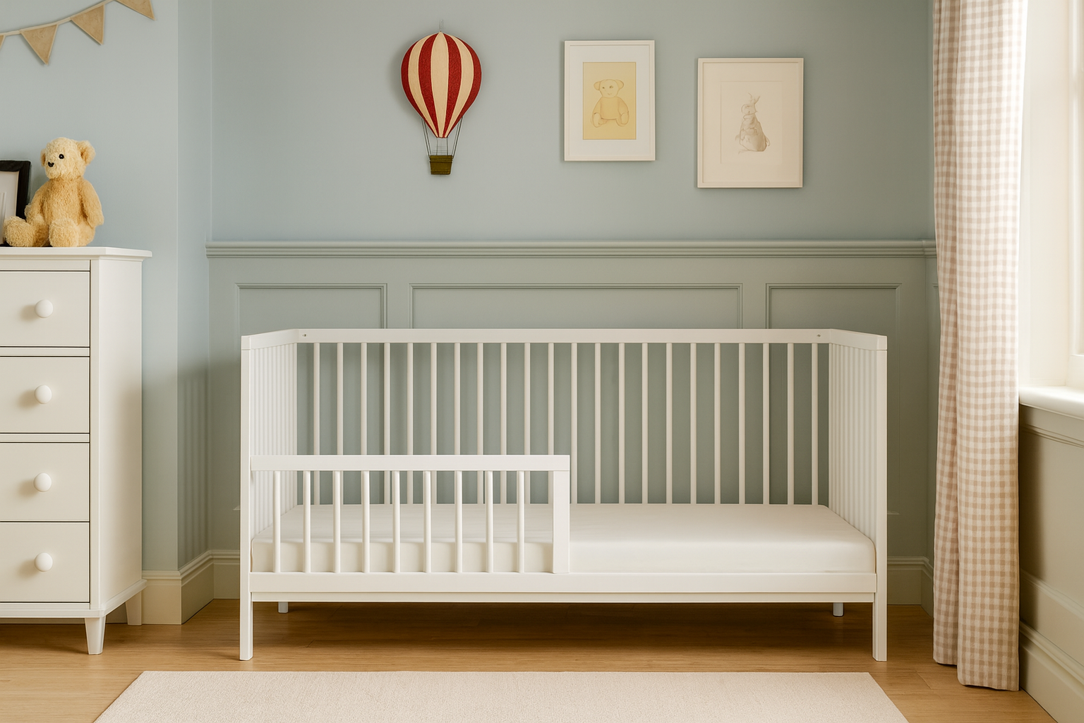 Made with durable and sustainable materials, with absolutely no toxic or harmful chemicals, you can have peace of mind that your baby is sleeping in the safest environment. This cot bed is perfect for the eco-conscious parent and well suited to any nursery style.Features include a height adjustable base with 7 positions. It also includes a removable panel which transforms the cot into a toddler bed. For added security, our safety rail is available to purchase separately.