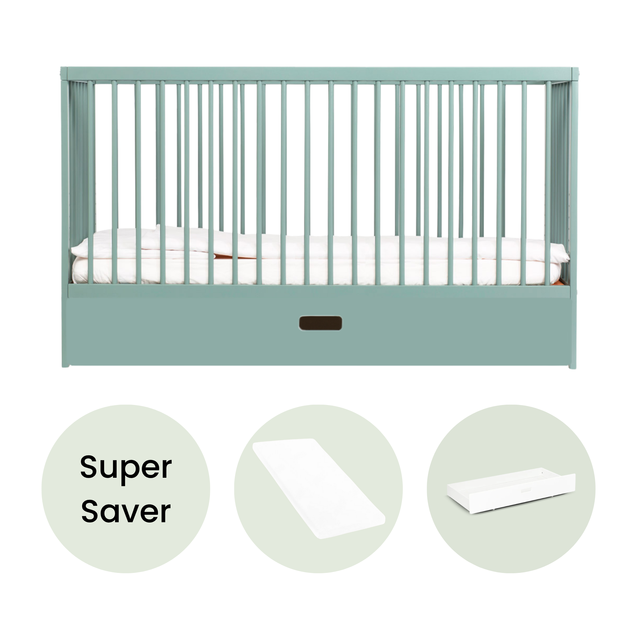 Midi Cot Bed With Drawer & Aloe Vera Mattress - Stone Teal
