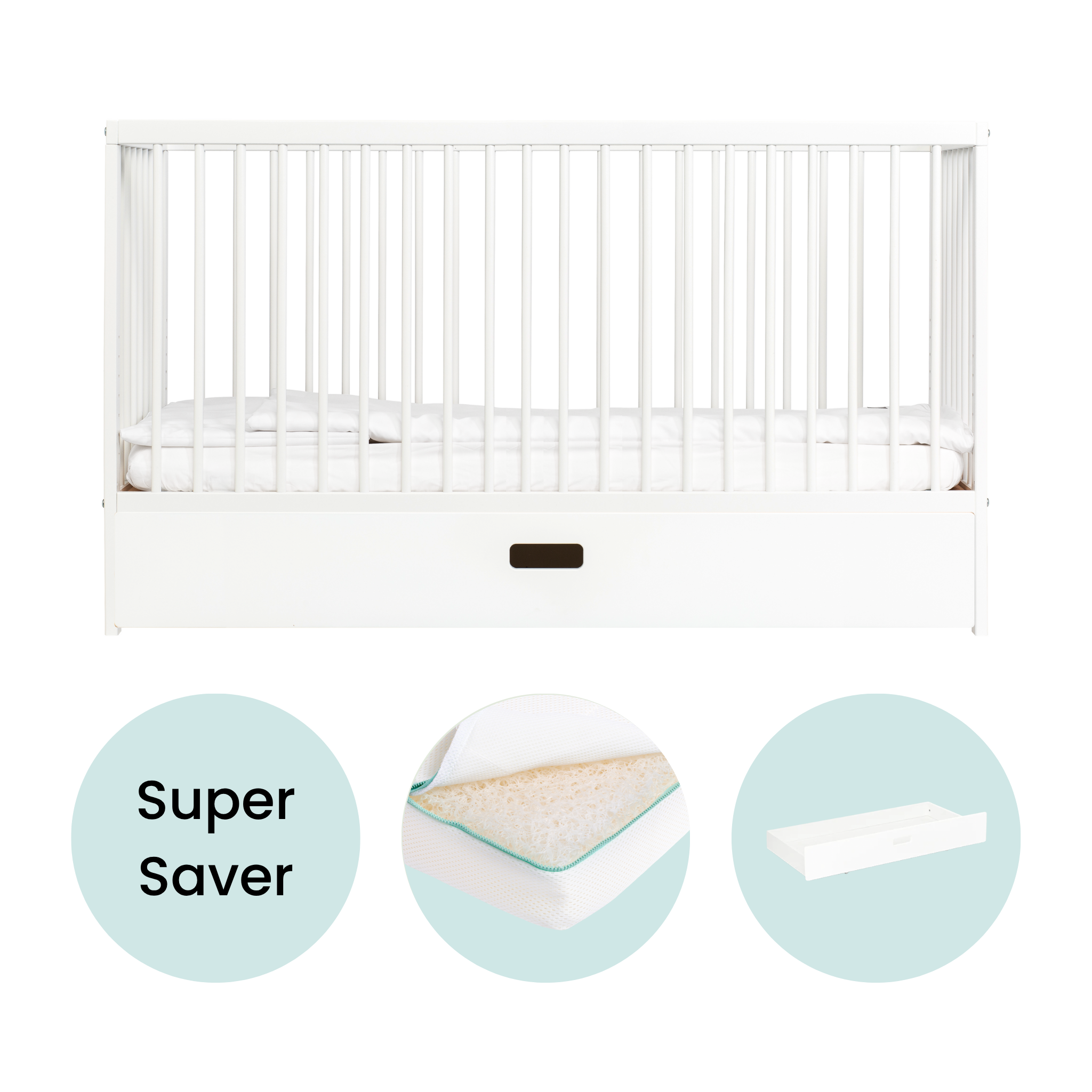 Midi Cot Bed With Drawer & Luxury Breathable Air Mattress - White