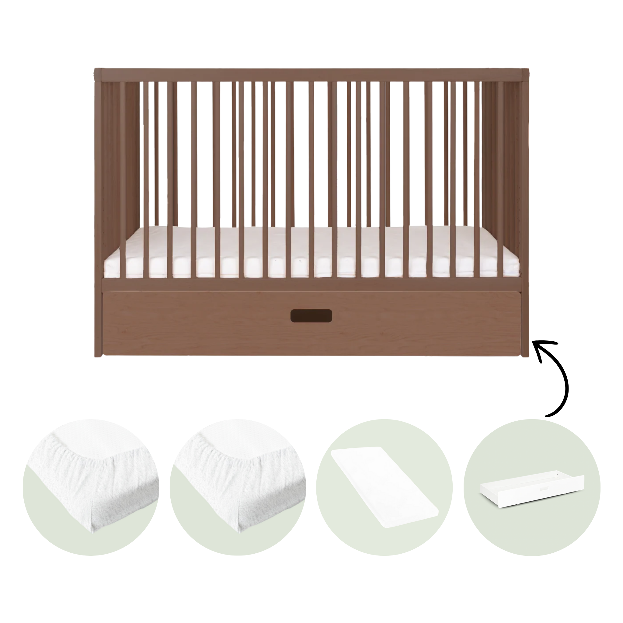 Small caster wheels make it easy for the drawer to roll in and out from under the crib so you always have quick and convenient access.