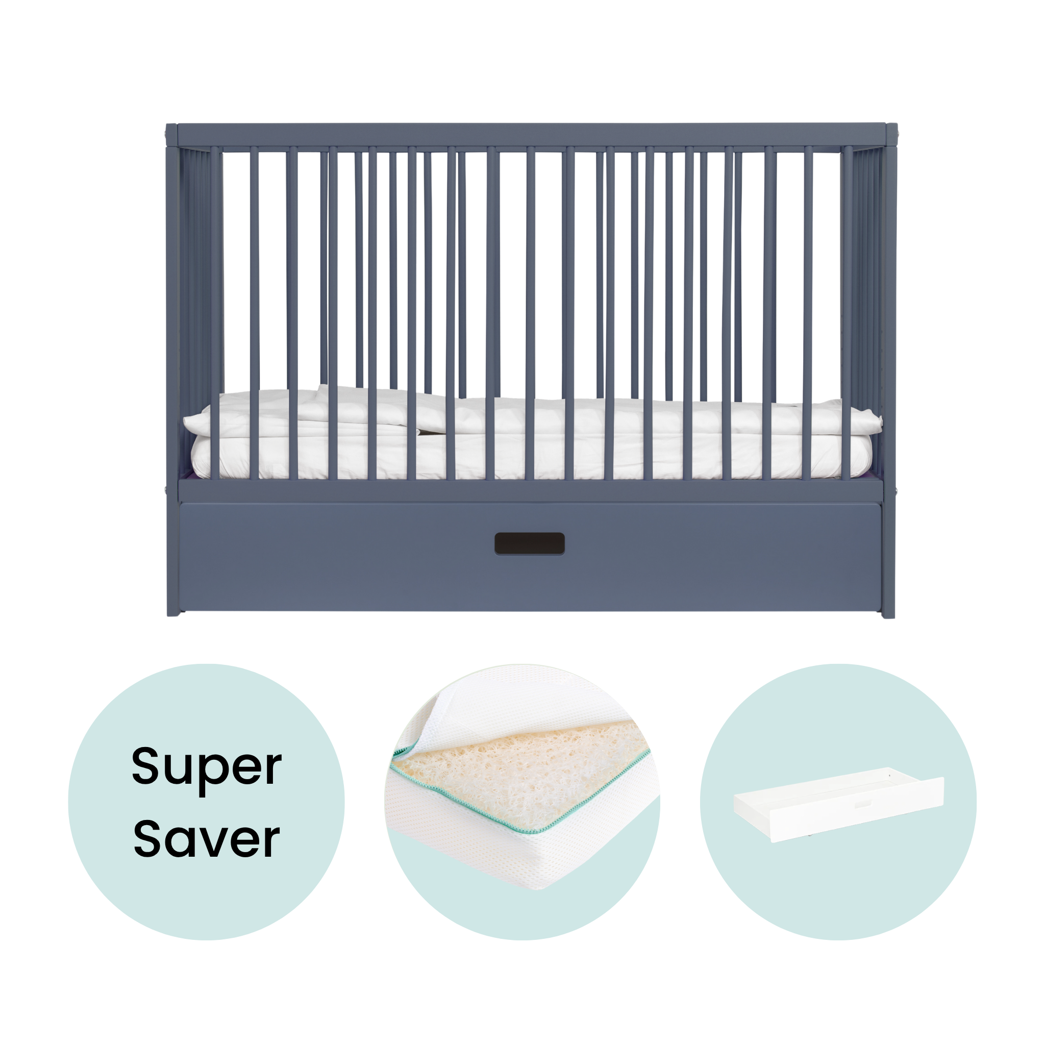 Mini Cot Bed With Drawer & Luxury Breathable Air Mattress - Stone Blue