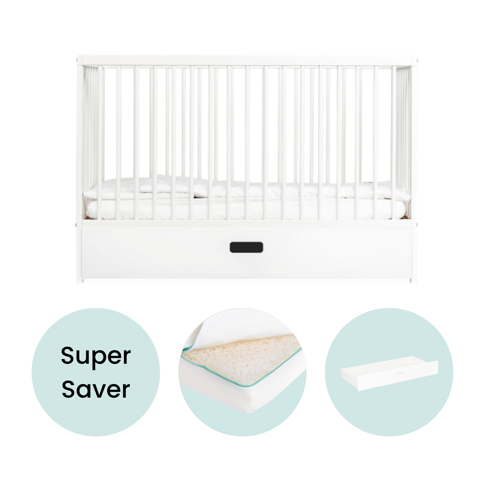 Mini Cot Bed With Drawer & Luxury Breathable Air Mattress - White